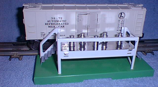 The 3472 Automated Refrigerator Milk Car consisted of two components -- a 3472 operating milk car and a delivery stand. To this day the operating milk car remains a popular accessory as it is a reliable accessory and only occasionally needing a cleaning or minor adjustment.