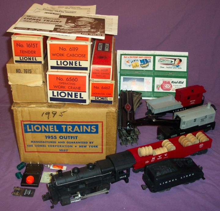 Set 502 or 1527 is an eye-catching work train set produced in only one year -- 1955. Lionel had a winning combination in this set with the small switcher locomotive hauling several of Lionel's longer freight cars. This mixture of longer freight cars and a smaller locomotive has the illusion of an almost scale-like train set.