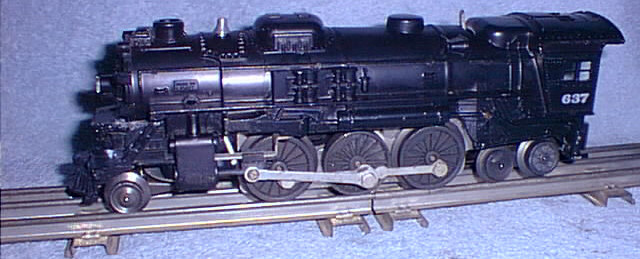 The 637 had a five-year production run but is not a common item to locate. Lionel catalogued this steamer as a Super-O locomotive and was the lead steamer in one Super O set for each of the five years it was manufactured. Cataloging this as a Super-O item was unusual as Lionel generally reserved only their top-of-the-line motive power for Super-O sets. This is the only case where Lionel did not follow their established pattern and catalogued a middle-of-the-line steamer as a Super-O locomotive.